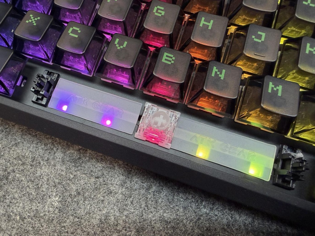 值得一提的是,空格键内置五颗灯珠,让光效覆盖更全面,营造出饱满而不刺眼的通透效果,无论是白天还是黑夜,都能成为桌面最亮眼的存在。