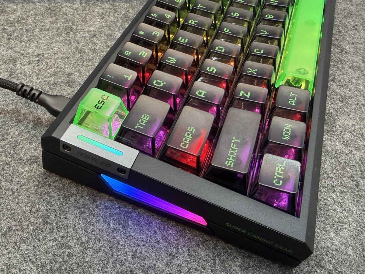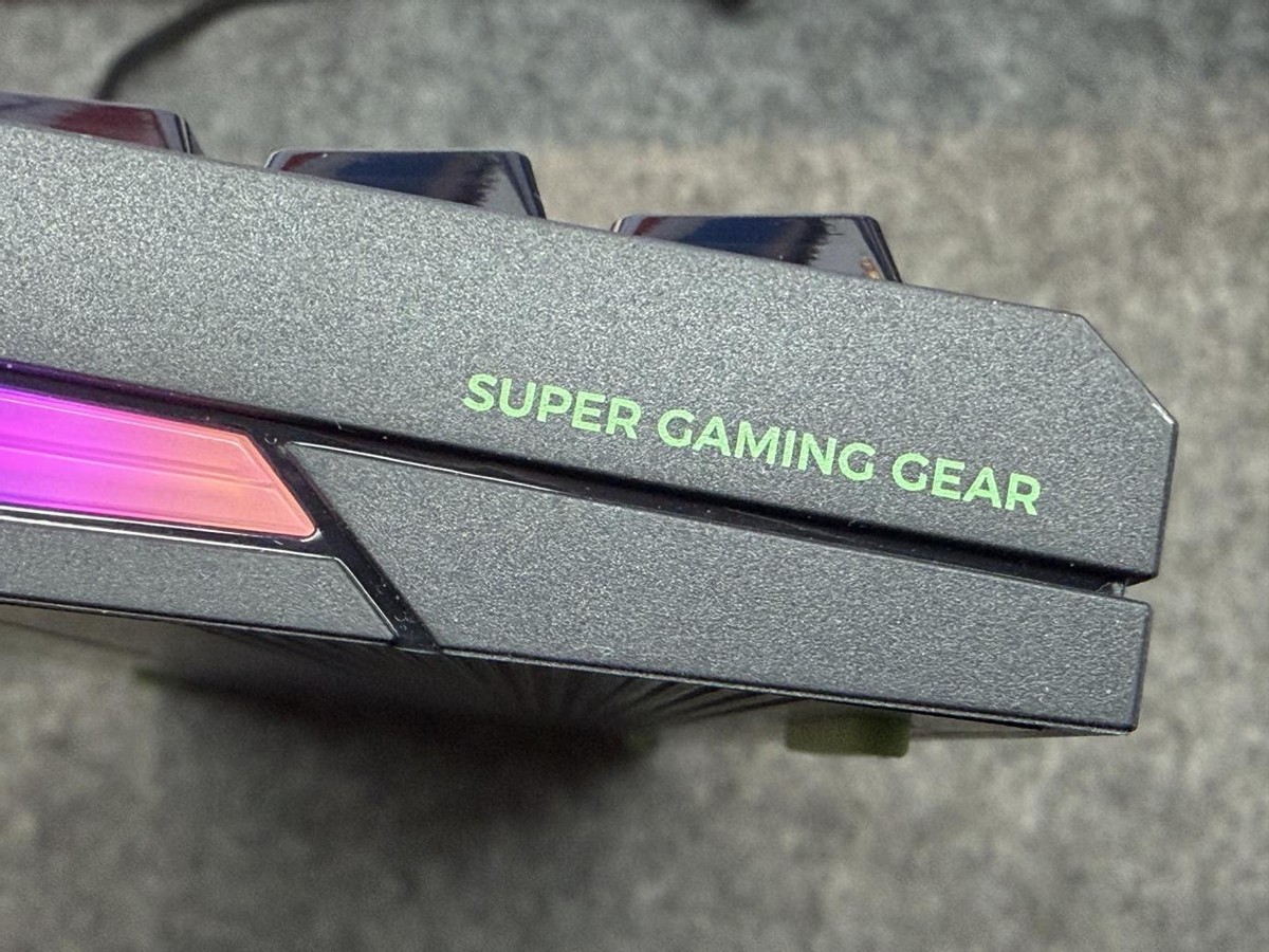 键盘采用晒纹外壳,触感非常舒适且不容易沾染指纹。键盘上绿色SUPER CAMING GRAR 标识彰显着键盘的与众不同。