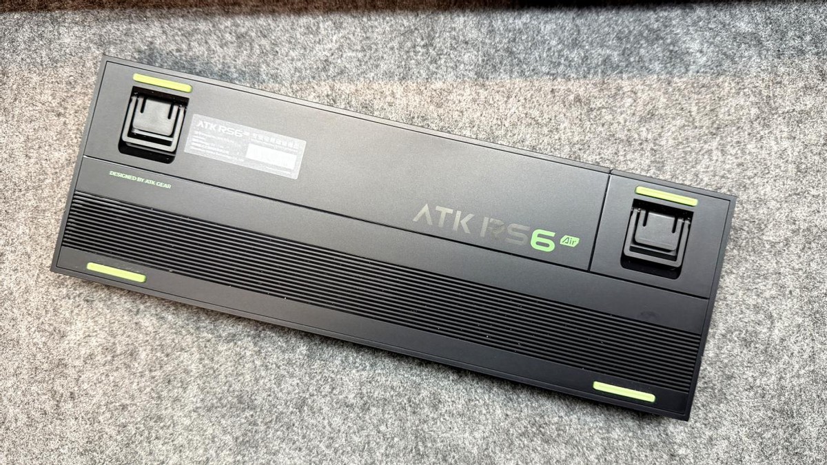 即使是用户不大注意的键盘底部,ATK也是不放过。绿色的防滑垫和键帽相呼应。底部的细小横纹可以有效增加摩擦力,拿取键盘更轻松。ATK RS6 AIR的logo也采用了黑绿色搭配,细微处体现出ATK的用心。