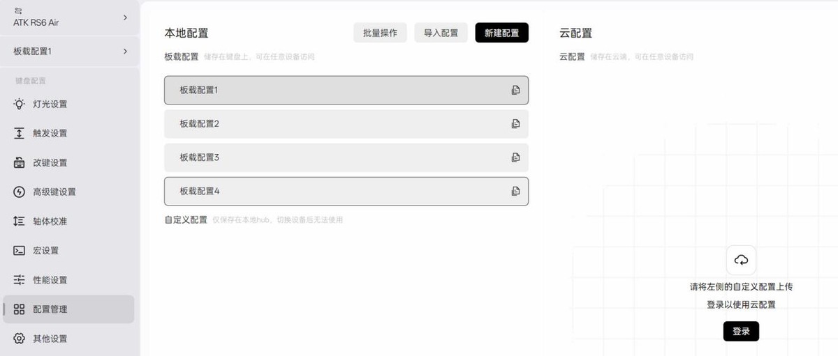 驱动的操作界面简洁直观,各项功能分类清晰,即使是没有使用过专业键盘驱动的新手,也能在短时间内上手。同时,驱动还支持参数保存功能,用户可以将自己设置好的参数保存为配置文件保存在云端,下次使用时登录账户直接加载即可,无需重复设置,非常便捷。