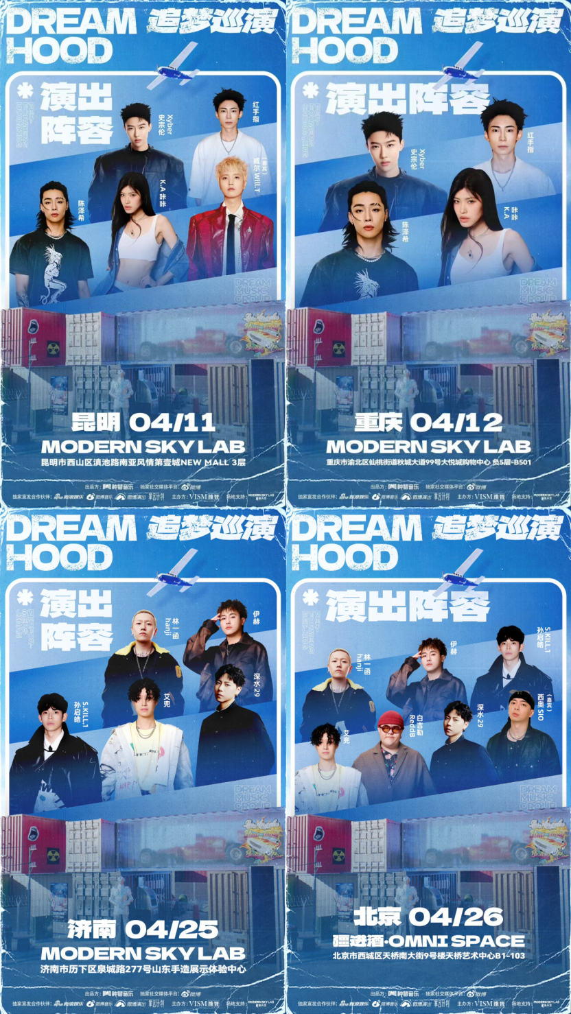 去年在《说唱梦工厂》中大放异彩的音乐人史宗伦Xyber、红手指、hanji林一函、伊赫、孙启皓S.KILL.1、陈泽希、艾兜、K.A咔咔、ReddB白吉勒、深水29轮番组合亮相,还有嘉宾OG威尔Will.T、西奥SIO的倾情加盟,这场自春日启程的DREAMHOOD音乐之旅途径昆明、重庆、济南、北京四站,吸引了全国各地的年轻人聚集,他们以独特的方式共同打造了这场今春最热烈的视听狂欢盛宴。