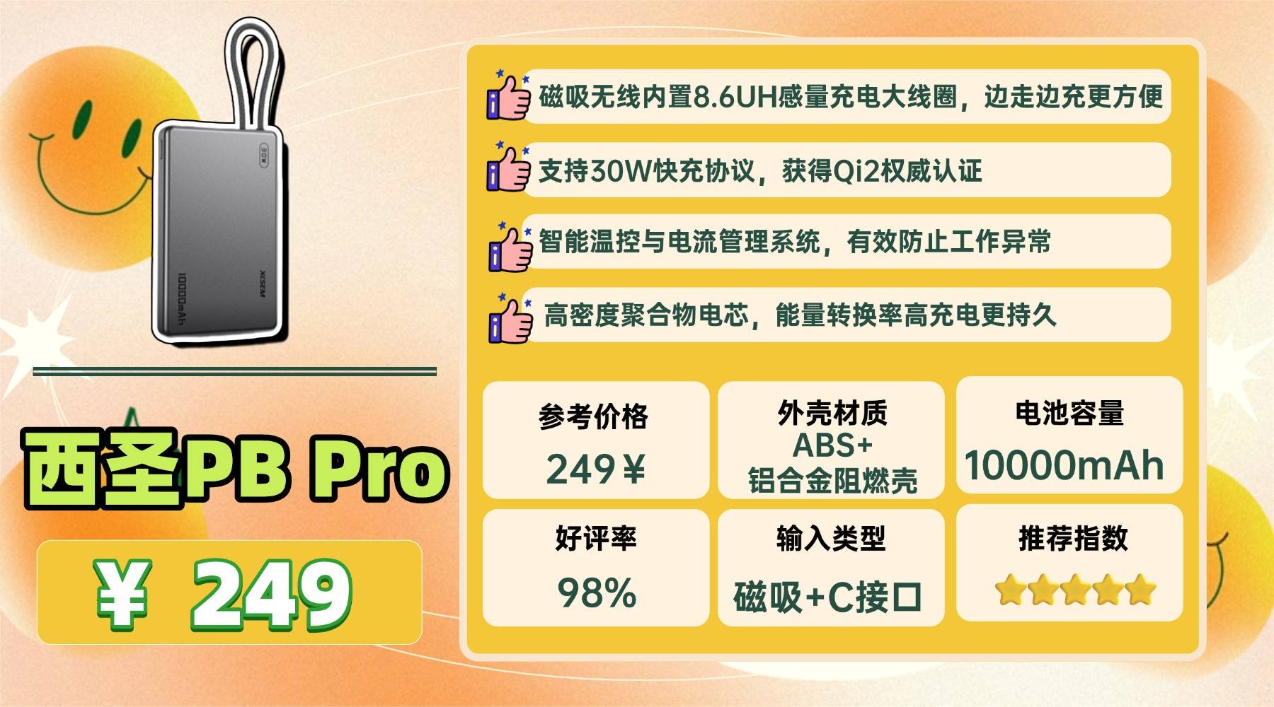 推荐一款性价比高的充电宝?西圣PB Pro自从发布以来,口碑和好感度一路高涨,成为最火爆的无线充电宝之一,也是众多数码博主和户外达人必备单品。其基本原因就是在于西圣PB Pro充电宝产品力超强,做到充电快,不发烫,更安全!同时在西圣6大快充不伤机黑科技加持下,解决了无线充电宝充电慢、发热量大等的行业问题,可以说是西圣PB Pro充电宝目前是天花板的存在,是行业的“安全快充”性能之王!