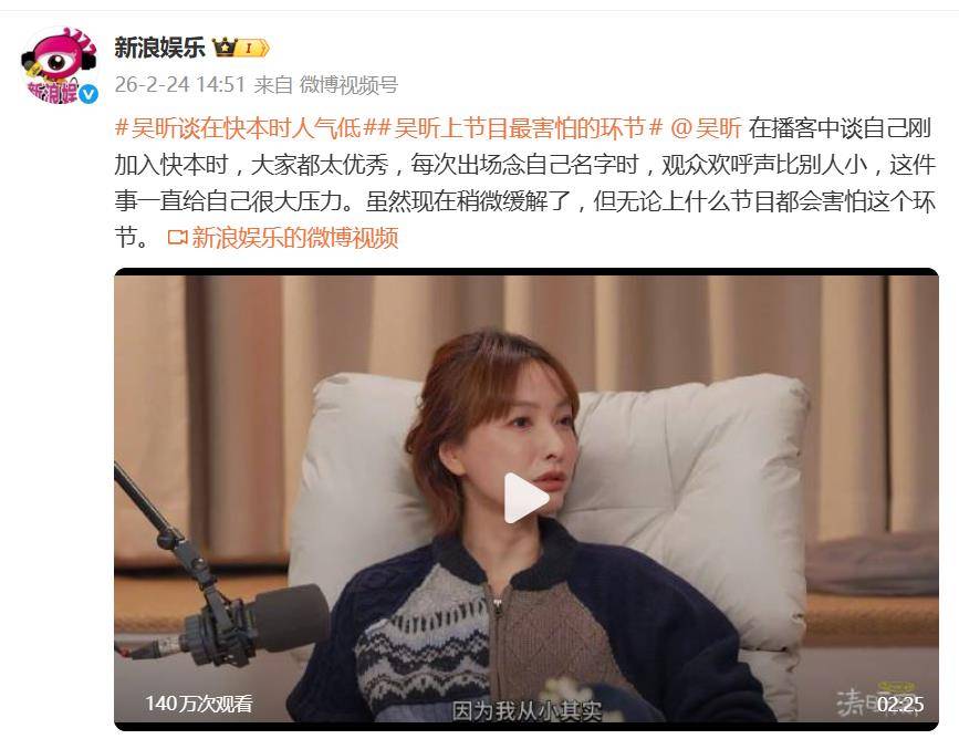 比经济压力更扎心的是“人气暴击”。每次节目开场念名字,轮到“吴昕”时,观众的欢呼声总是明显比别人小一截。这件事成了她心里一根刺,压力巨大,甚至形成了持续十多年的“应激反应”——她坦言,直到现在上任何节目,都害怕这个自我介绍环节。
