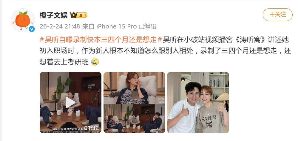 吴昕在视频播客《涛昕窝》里的一番坦白,直接把无数“职场新人”的回忆杀给戳破了。谁能想到,如今在镜头前游刃有余的她,当年在《快乐大本营》录了三四个月,满脑子想的竟然是“辞职去上考研班”?这段因经济窘迫、社交恐惧与人气落差交织的至暗时刻,引发了全网打工人的强烈共鸣。