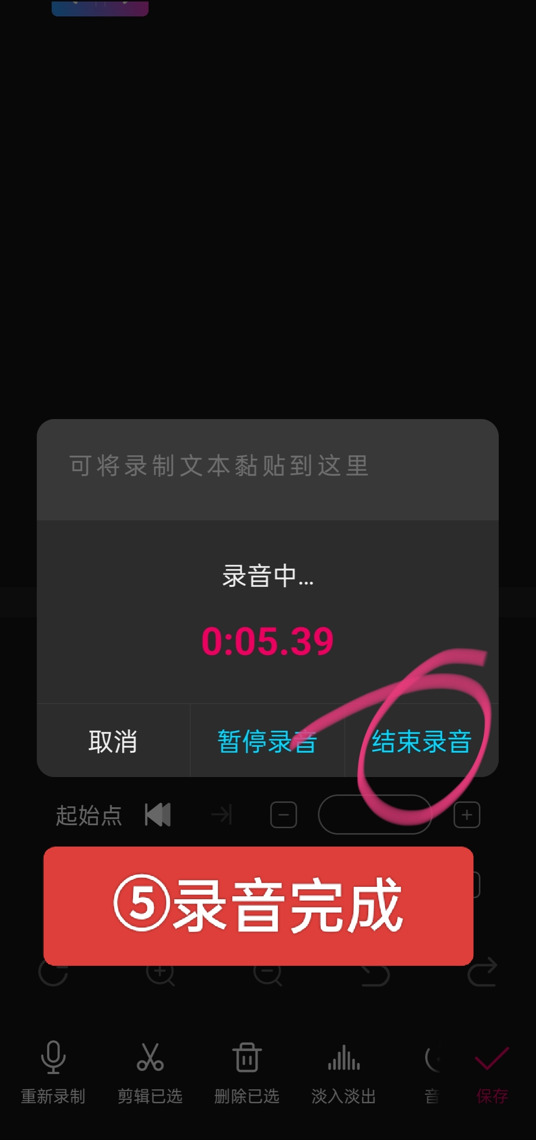 技巧:语速适中,避免背景噪音,录制3-10秒即可(如图⑤)。