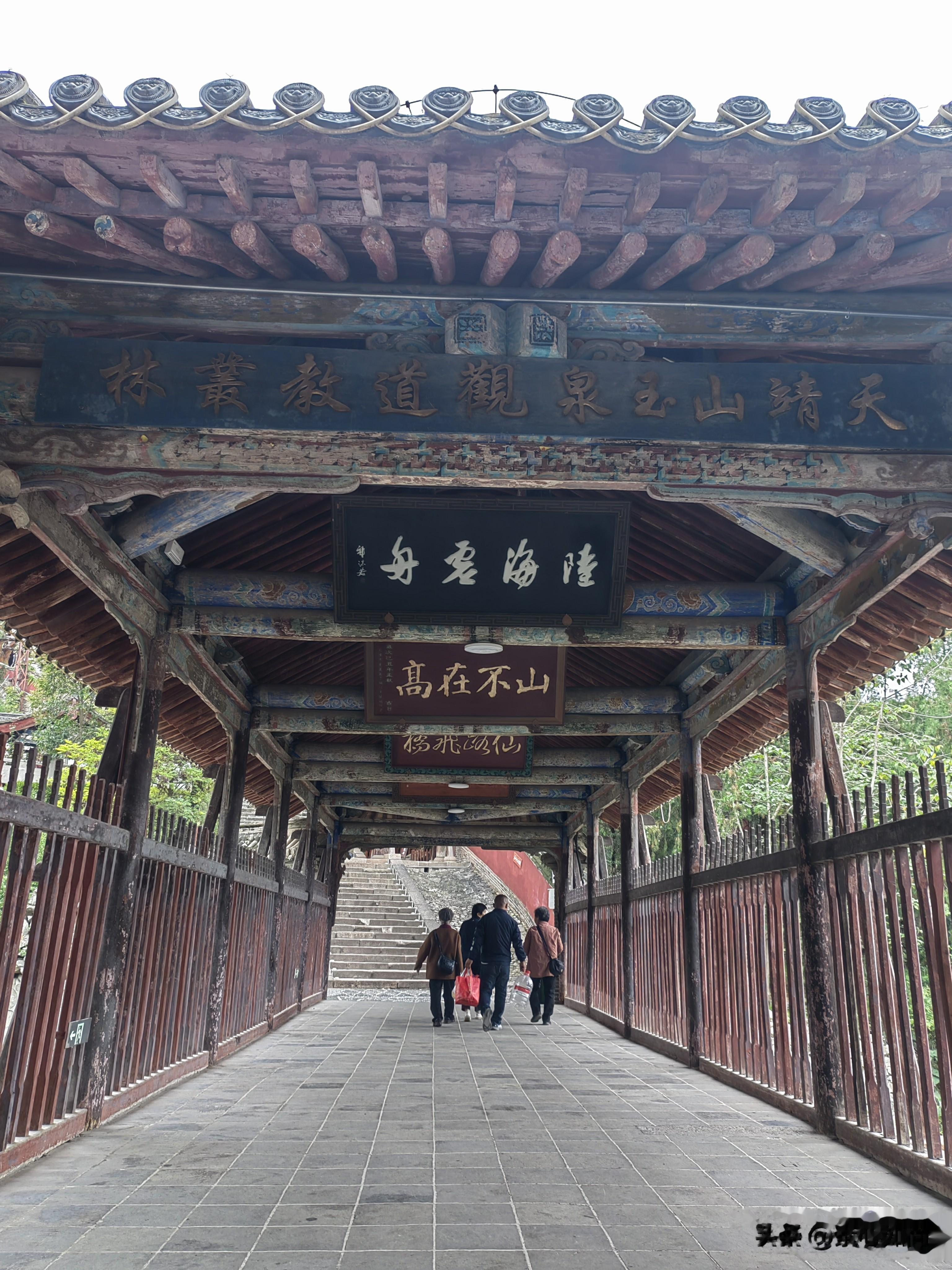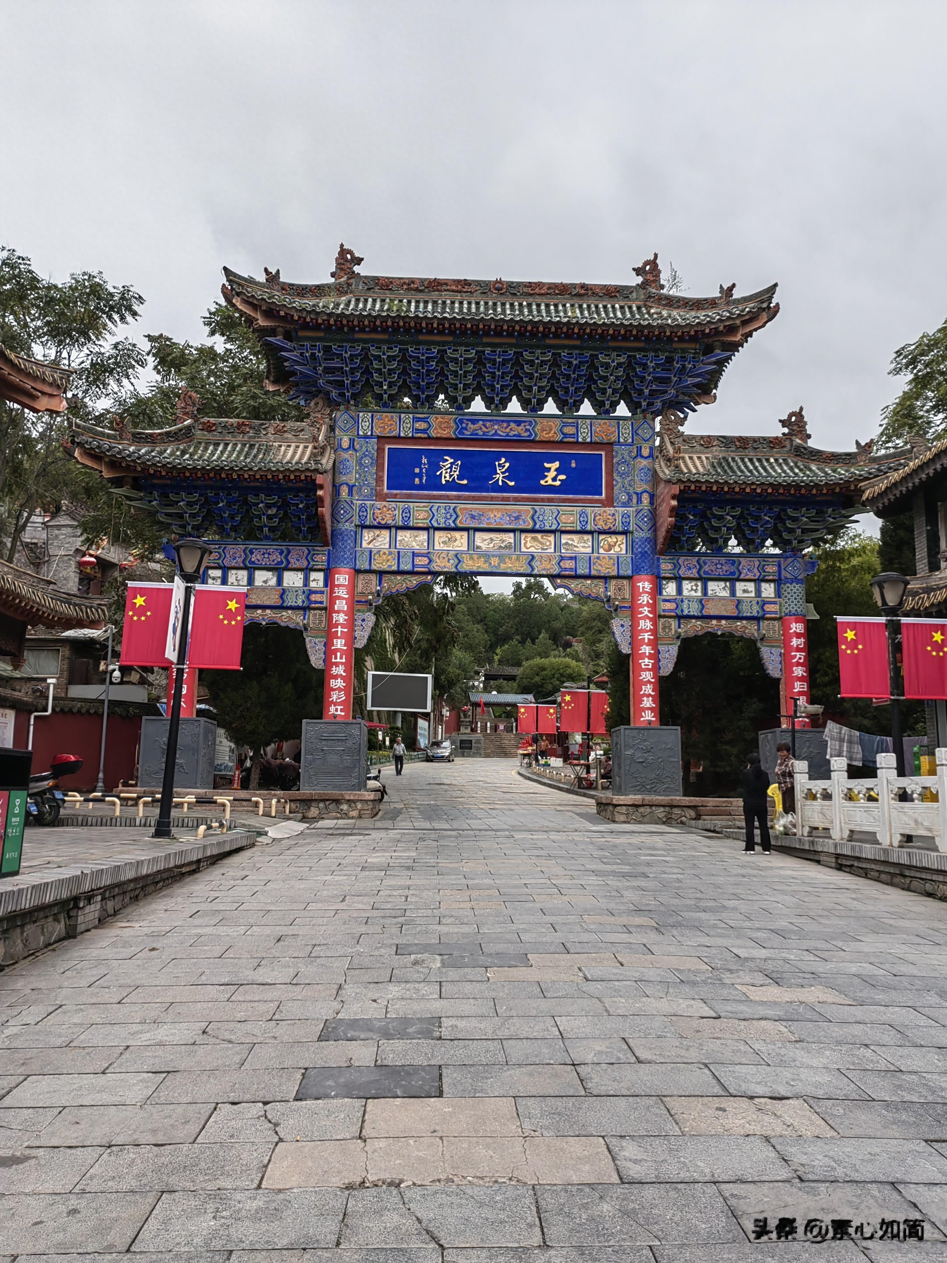 不过今天天气不错,没有下雨,阴,一场秋雨一场寒,雨天过后,寒意逼来,我穿上了冲锋衣内胆才敢出门。今天我准备去逛天水古城,从住处去天水古城有20公里,公交车驶了1个多小时才到玉泉观,从这里下车还要步行400多米才到天水古城,这时我有些内急,问路人说玉泉观停车场有卫生间,这样我来到了玉泉观山门,看了简介才知道玉泉观是元明清时期的古寺,现在是4A景区,而且在天水也是有名的景点,就这样我误打误撞进了玉泉观。