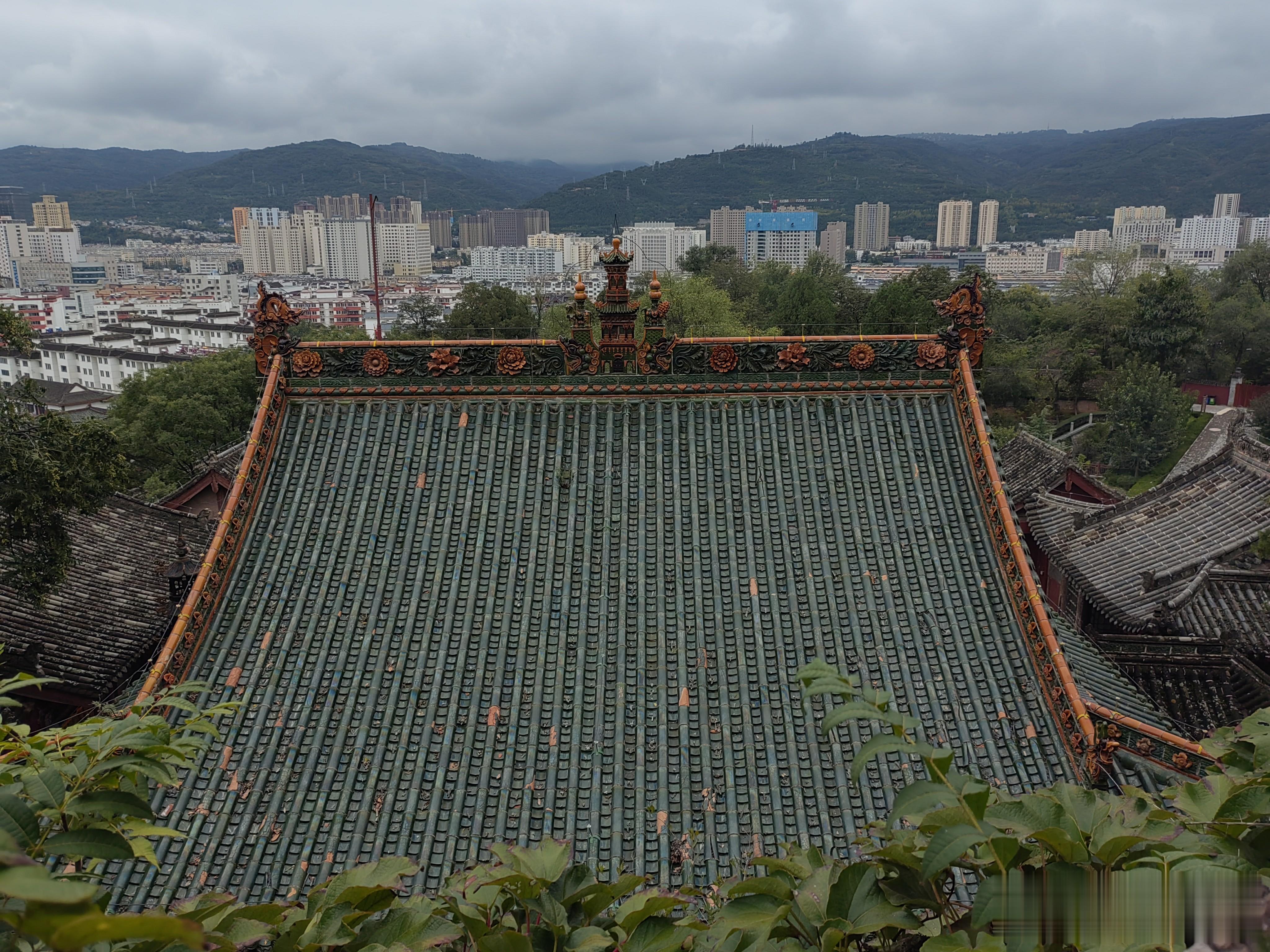 从玉皇殿的右侧继续攀登,穿过“层峦叠翠”牌坊就到了三清殿,这里供奉着道教最高天神“玉清元始天尊”、“上清灵宝天尊”和“太清道德天尊”,站在这里可以俯瞰天水市。