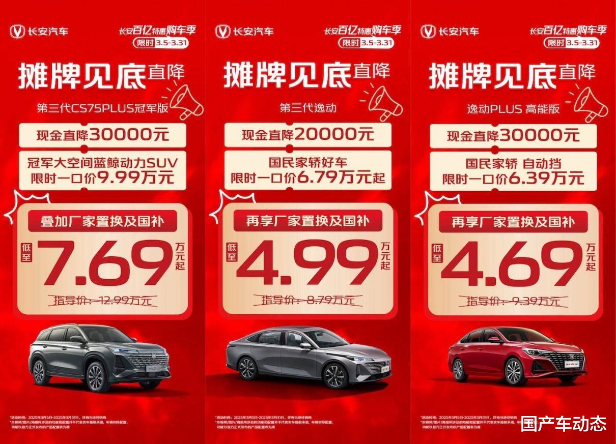 除了第二代X5PLUS,这次长安摊牌见底价也惠及第三代CS75PLUS冠军版、第三代逸动以及逸动PLUS高能版三车,分别实现低至7.69万元、4.99万元以及4.69万元的起售价,这优惠力度可以说绝无仅有。