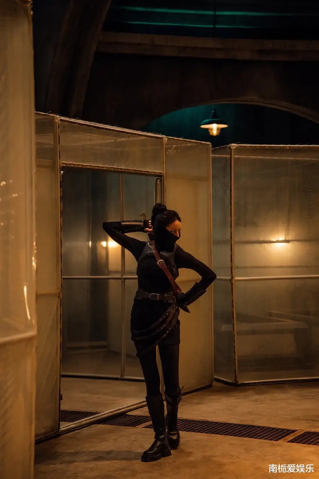 剧中第六集雨夜猎枭戏堪称名场面:她藏身暗处,雨水顺着金属叠链滑落,抽刀瞬间眼神骤变,凌厉如刀锋出鞘,动作快得仿佛“开了二倍速”。那一头紧束的黑发在打斗中划出锋利弧线,网友直呼“头发丝都在演戏”,相关片段短视频播放破亿,直接将“疯刀美学”送上热搜。
