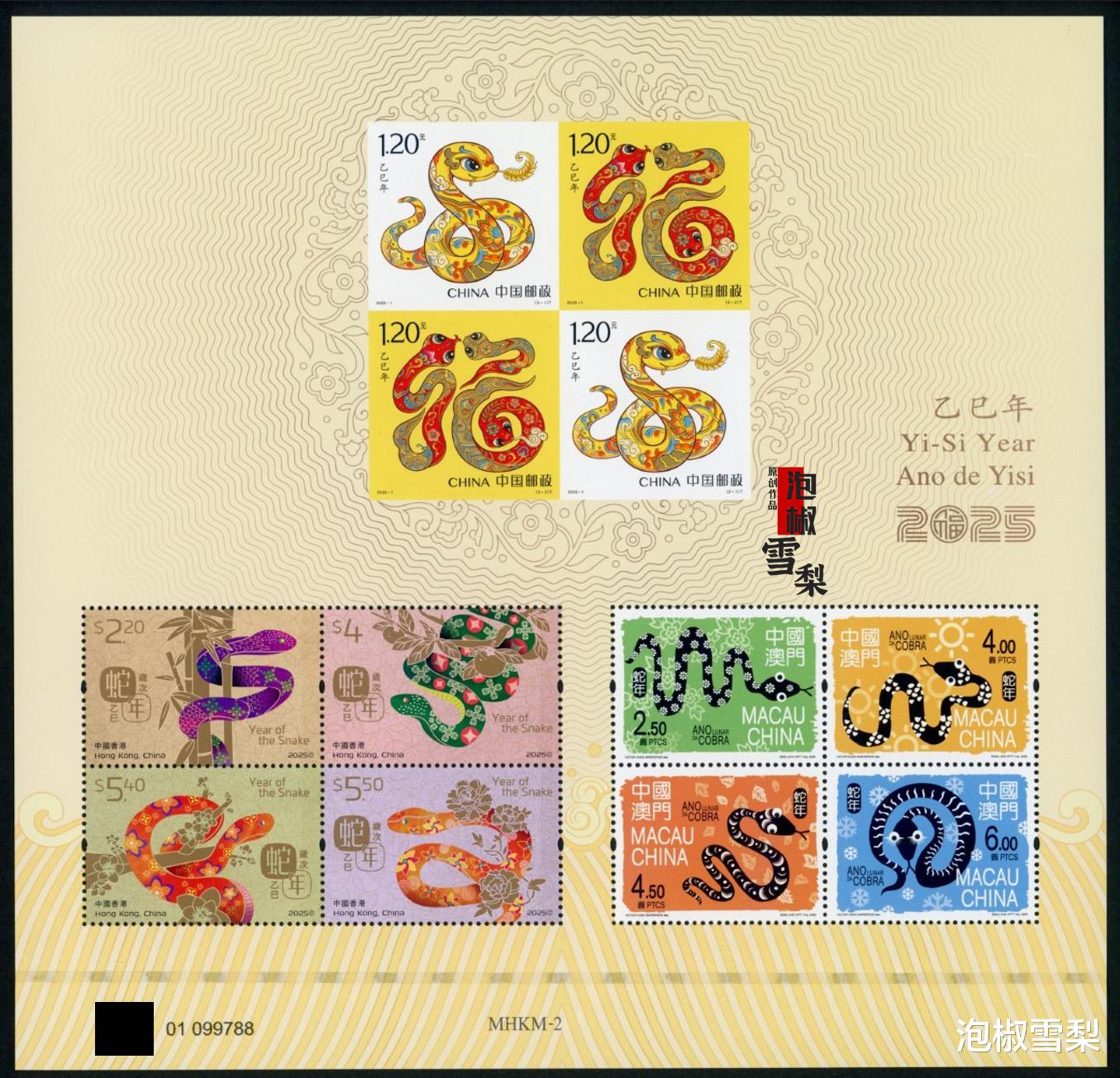 最近在某平台上看到,有邮商把2025年发行的蛇三地小全张裁开,将上半部分单独拿出来出售,说是特供的无齿小版张,售价还高达