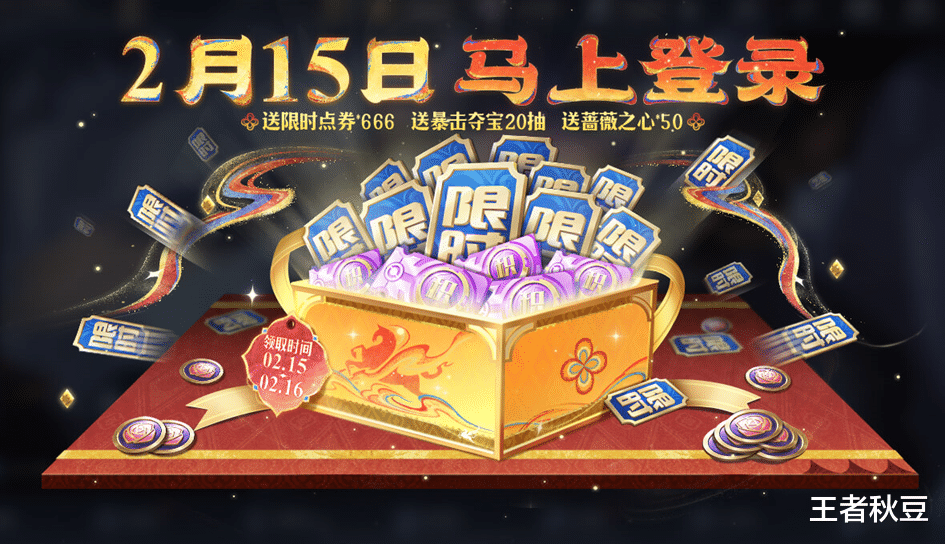 在2月15日和2月16日两天的任意一天登录游戏,即可领取限时点券x666,还能领取暴击夺宝券x20、马上发财头像框好礼和10万小马钱,属于一定要做且简单的农活了。