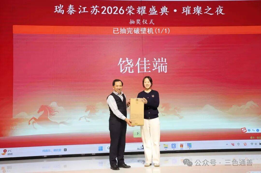 2026年2月11日,瑞泰江苏2026荣耀盛典·璀璨之夜在泓历皇朝大酒店隆重举行。全体瑞泰江苏同仁欢聚一堂,在温暖与激情交织的氛围中,共同回顾奋斗足迹,展望崭新征程。本次年会以“实干为基,静耕致远”为主题,既是一场凝心聚力的年度总结大会,也是一场属于瑞泰江苏人的荣耀盛宴。
