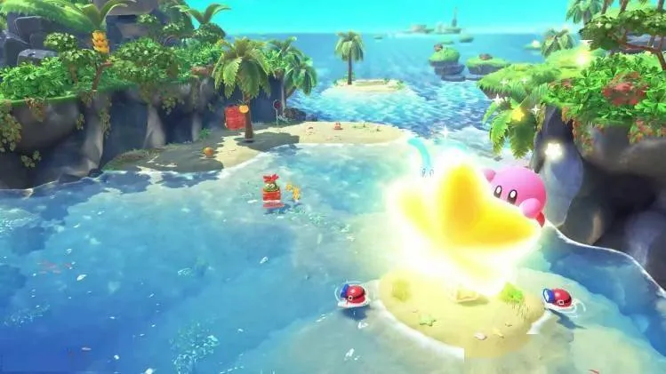 核心能力:B键吐出星星攻击,长按B键可蓄力释放“星星炮”(对群怪效果佳);靠近敌人按Y键吸收,吸收后按Y键释放对应能力(如吸收“火焰敌人”获得火焰喷射);
