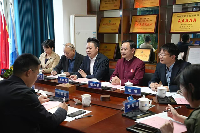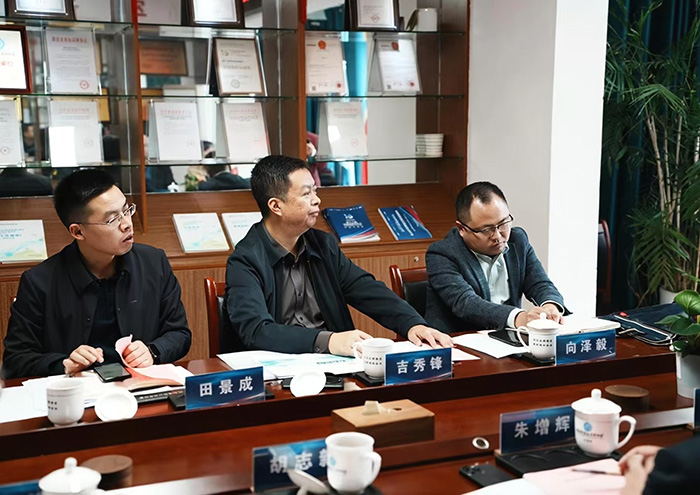 朱增辉对吉秀锋一行的到来表示欢迎,随后胡志新介绍协会的发展历程、组织架构、协会职能、会员服务、党建工作等基本情况,以及近期主要工作内容和工作目标。