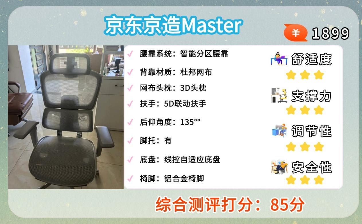 京东京造Master,它搭载6维动态自适应腰靠系统,可在“自适应”、“动态追腰”与“固定撑腰”三种模式之间自由切换,能根据不同身形、坐姿智能调整支撑力度。配合线控自适应底盘,座椅可实现50mm高度调节,操作顺滑,轻松适应办公、休息或游戏等多种场景。
