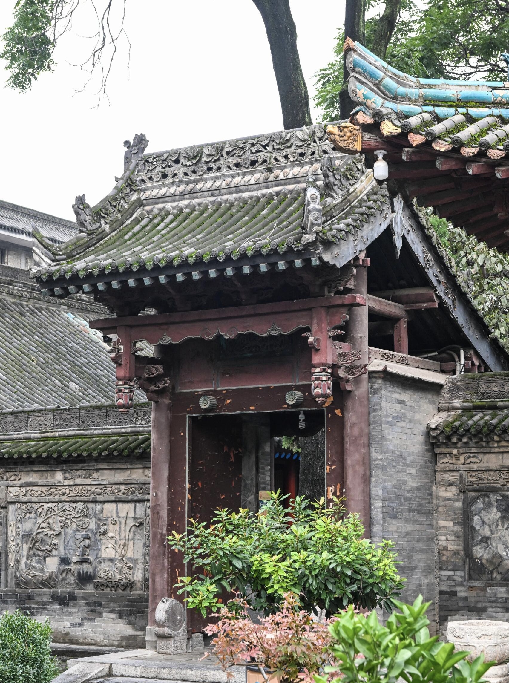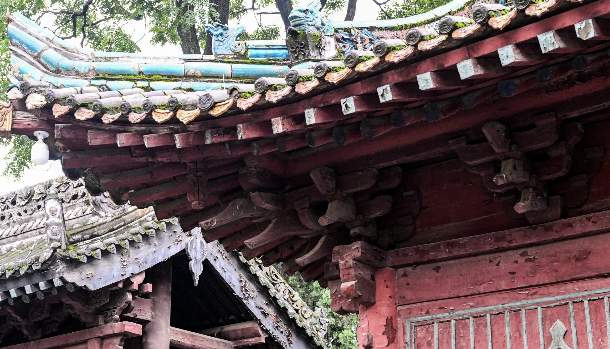 伸手摸了摸门框上的木纹,指尖能触到岁月磨出的光滑。这门面阔三间、进深两间,单檐歇山顶的弧度像被精心量过,既没有故宫宫门的张扬,也不像普通民宅门的局促,透着股恰到好处的庄重。檐下的斗拱是青灰色的,每一个“斗”都方方正正,“拱”的线条却带着柔和的弧度,有懂建筑的游客凑在檐下数:“一、二、三……六层斗拱!这规格在清代可是不多见。”旁边立马有人接话:“可这门看着不像清代的啊,你看这木门的包浆,最少得有几百年了。”两人正争着,住在附近的马大爷提着菜篮子路过,笑着插了嘴:“你们都没说对!这门是明代建的,后来清代补过斗拱,你看那最上面一层斗拱,颜色比下面的浅,就是后补的。”