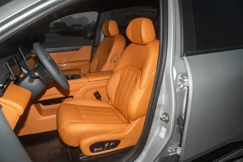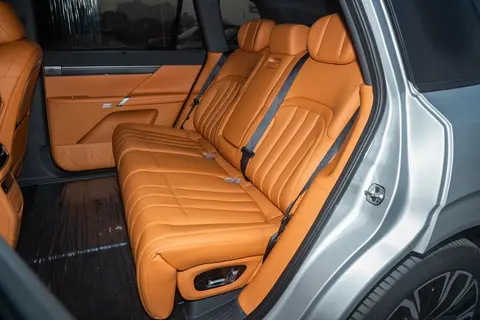 第二排的电动魔毯座椅功能丰富,四分与六分腿托可独立调节,左右两侧乘客能根据自身需求调整腿托角度与长度;座椅靠背角度支持电动无极调节,可向后调节 9 度,最大角度达 36 度,调节方式包括按键操作、6.92 英寸二排智能扶手屏控制与中控屏控制三种。这块扶手屏集成了空调调节、座椅设置、遮阳帘控制、娱乐屏操作、媒体音量调整等功能,还配备 Type-C 充电接口,后排乘客无需依赖前排操作,即可完成大部分舒适性配置调节。第二排座椅可选装加热功能,冬季使用时能带来更温暖的乘坐体验;后窗侧遮阳帘为选装配置,夏季阳光强烈时,能有效遮挡侧面强光,避免家人被暴晒,提升后排乘坐舒适度。