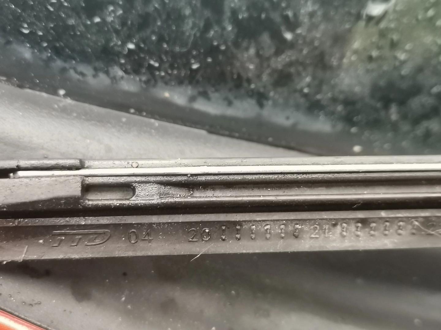 注意雨刮支架上的卡位,胶条只能从一边抽出。下图就是支架一边,用尖嘴钳捏住胶条左边一端,顺着支架的卡槽慢慢往外抽,注意里面有两根细钢条,要一起抽出来,别弄丢了。