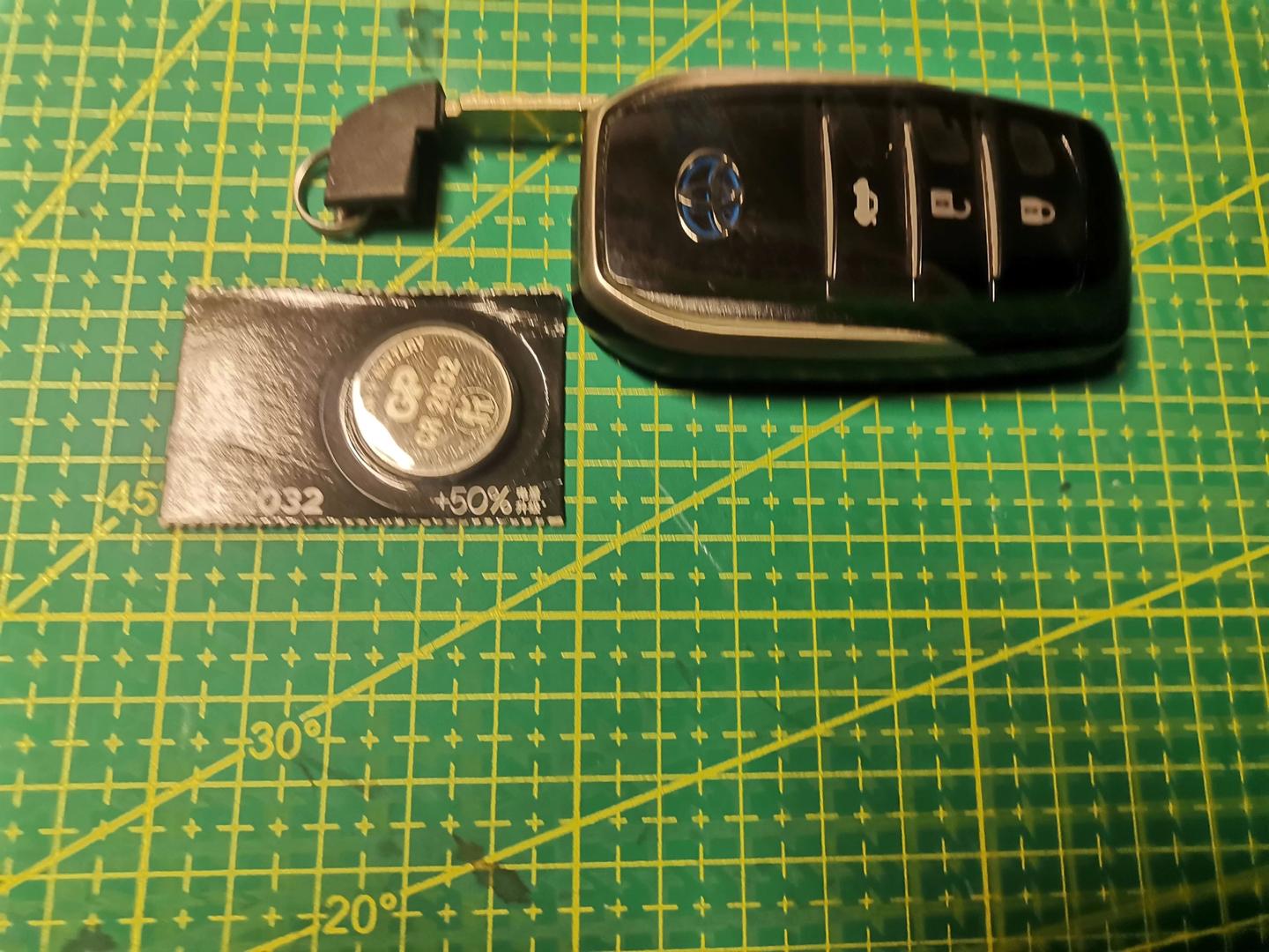 新电池:丰田大部分车型钥匙用CR2032电池,不确定的话可以先拆旧电池看型号就行。
