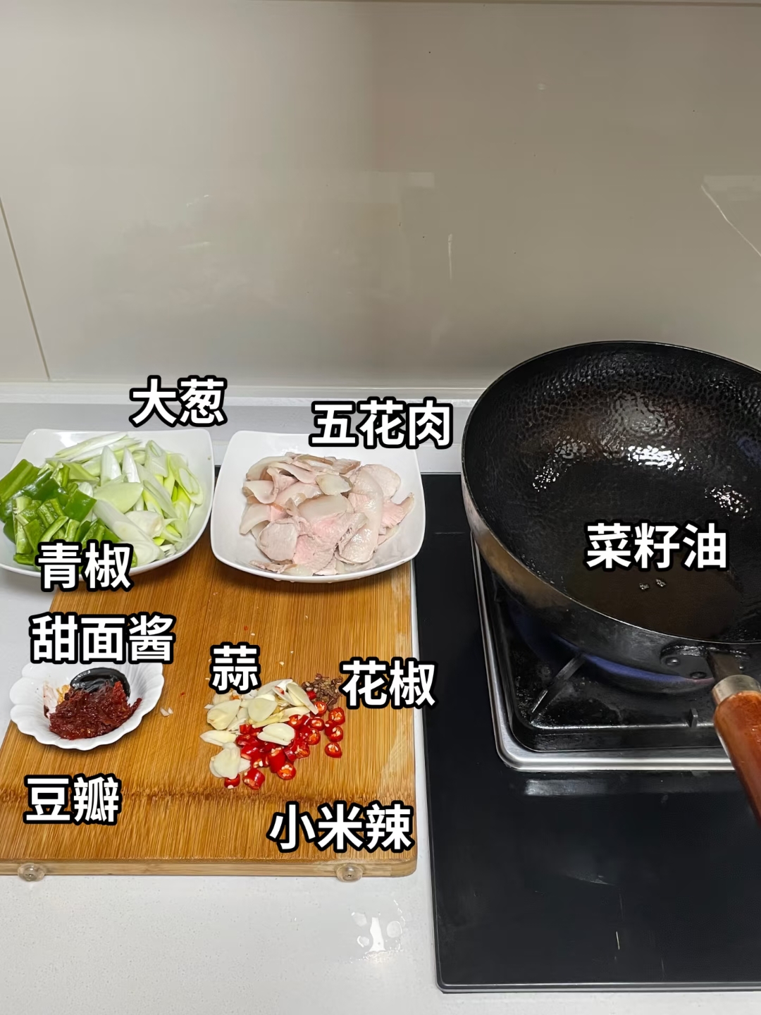 全程20分钟,新手也能零失误!先把五花肉切成薄片(冻半小时再切更好成型),大葱切段,青椒切块,小米辣和蒜切末备用。锅里不用倒油!直接把五花肉片倒进去,开中小火慢慢煸炒。看着肥肉部分逐渐变透明,油脂滋滋地冒出来,瘦肉边缘微微焦黄,这时候就可以把煸出来的多余油脂倒掉一些(留一点才香!)。