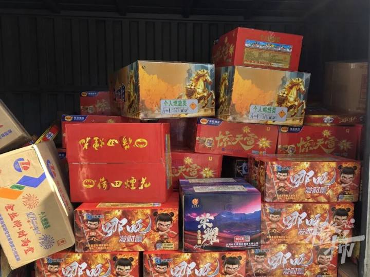 与此同时,民警在李某驾驶的车辆内,查获部分待转移的烟花爆竹,共计各类烟花爆竹426箱。