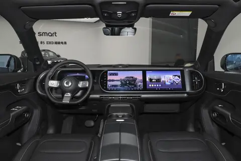 内饰方面,smart精灵#5 EHD超级电混(图片|配置|询价)内饰采用环抱式座舱布局,新车采用了3屏内饰设计13英寸OLED 2.5K的双联屏。新车配备AMD V2000车机芯片,smart精灵#5还配备有10.3英寸全液晶仪表盘和25.6英寸AR-HUD。配备三辐式多功能方向盘、怀挡式换挡机构,还提供全液晶仪表、大尺寸中控双联屏、AR-HUD抬头显示,支持主副驾分区娱乐信息显示,副仪表台位置配备有手机无线充电面板。此外,新车提供浅蜜棕和曜石黑两种内饰配色可选。前者更有活力,或者更大气。新车还集成了豆包 AI 大模型,语音交互和多模态控制体验得到了强化。车机不仅能够完成常见的导航、多媒体操作,还能在复杂场景下提供更自然的人机交互方式,例如多轮对话、语义理解和跨应用操作。车内采用 Nappa 真皮、256 色氛围灯、20 扬森海塞尔典范音响系统、AMD 5 屏智能互联座舱,搭载 AMD V2000 桌面级芯片。