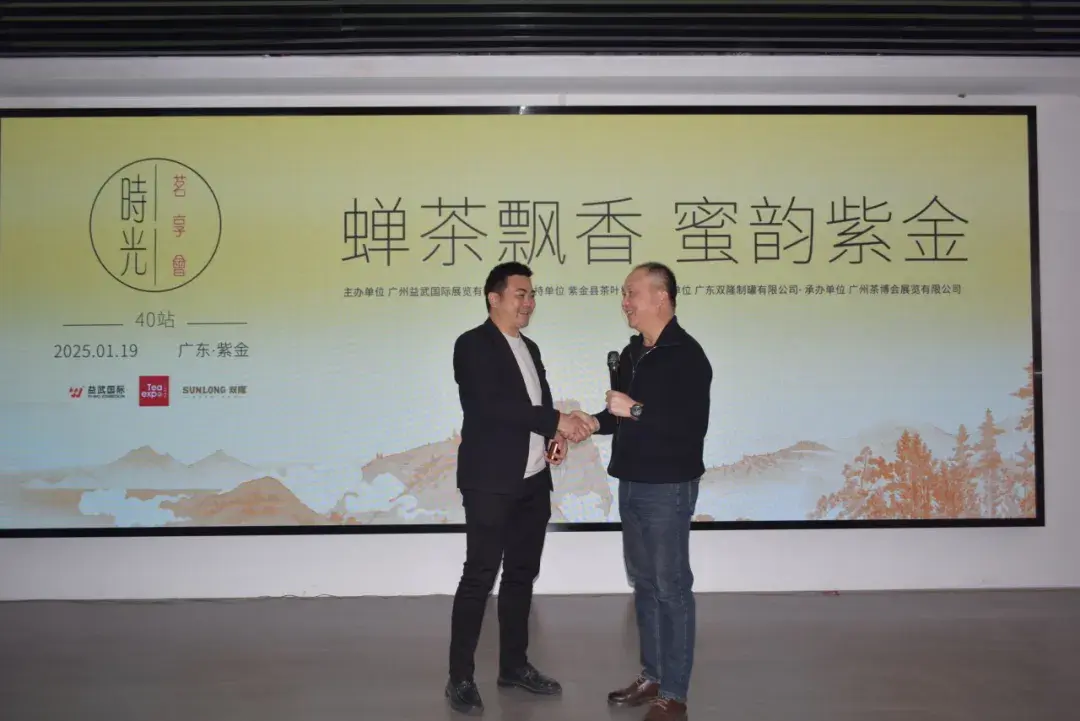 “时光·茗享会”的环节,主办方广州益武国际展览有限公司介绍本次活动要与大家分享的两道茶。