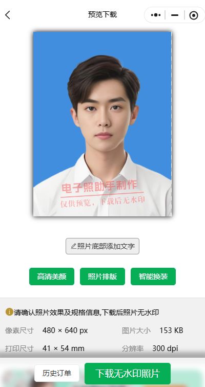预览效果并下载合规的电子照片,把照片发给老师即可