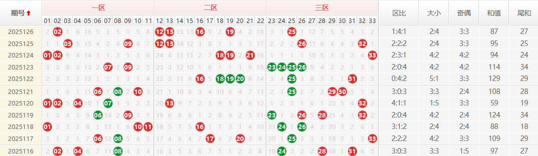 后区10号热极必冷,建议放弃。重点盯防05(遗漏9期)与14(遗漏12期),二者构成“一头一尾”奇偶对称。
