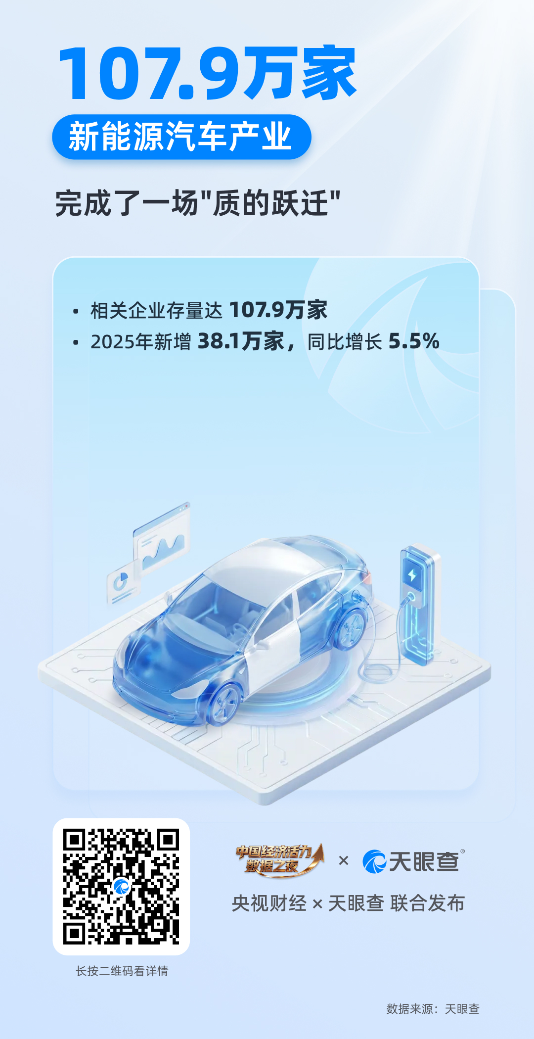 截至2025年,全国新能源汽车相关企业注册总量已达107.9万家,2025年全年新增企业38.1万家,同比增长5.5%,产业生态持续繁荣。经过多年发展,该产业已实现从规模扩张向技术突破、品牌升级的“质的跃迁”,在动力电池、智能驾驶、整车制造等领域形成了全球领先的产业竞争力。
