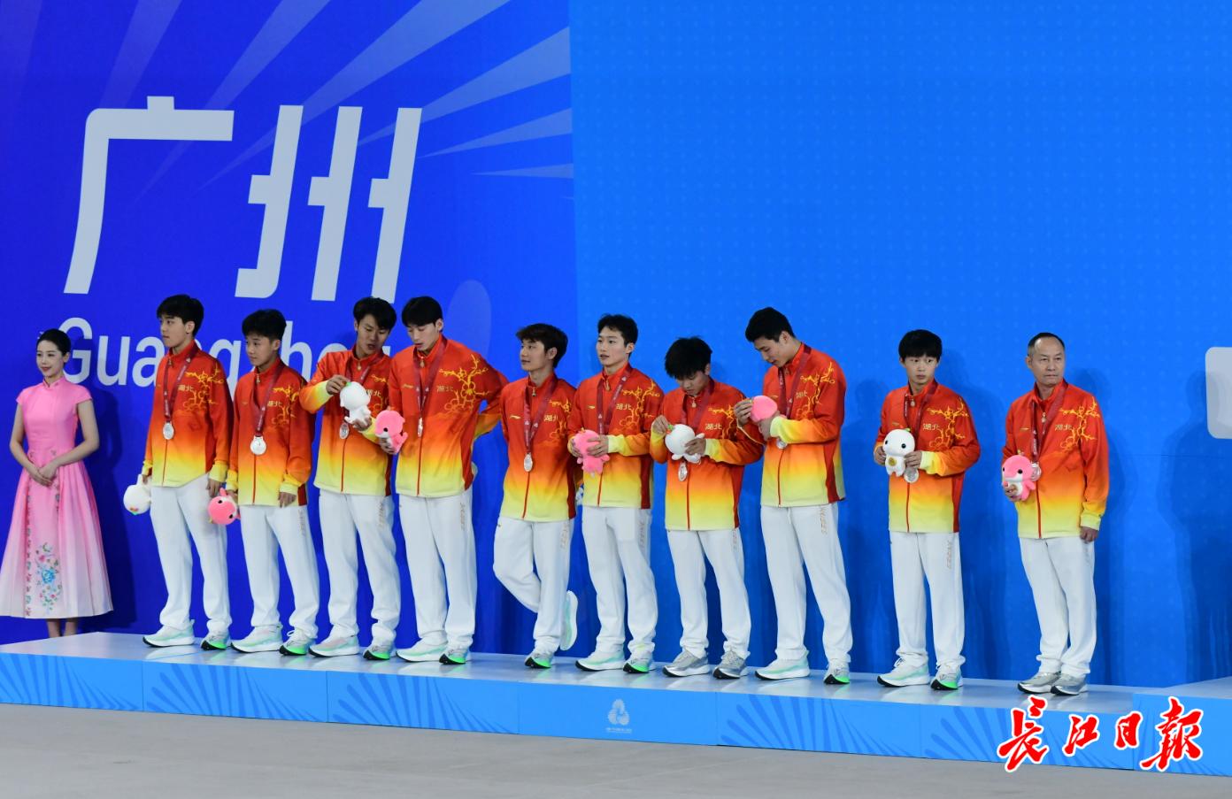 11月3日,第十五届全国运动会跳水男子团体决赛中,经过双人3米跳板、10米台、3米跳板、双人10米台的角逐,湖北队获得亚军。这是在该项目上湖北跳水男团首次站上全运会颁奖台,取得历史性突破。广东队和山东队分获第一名和第三名。