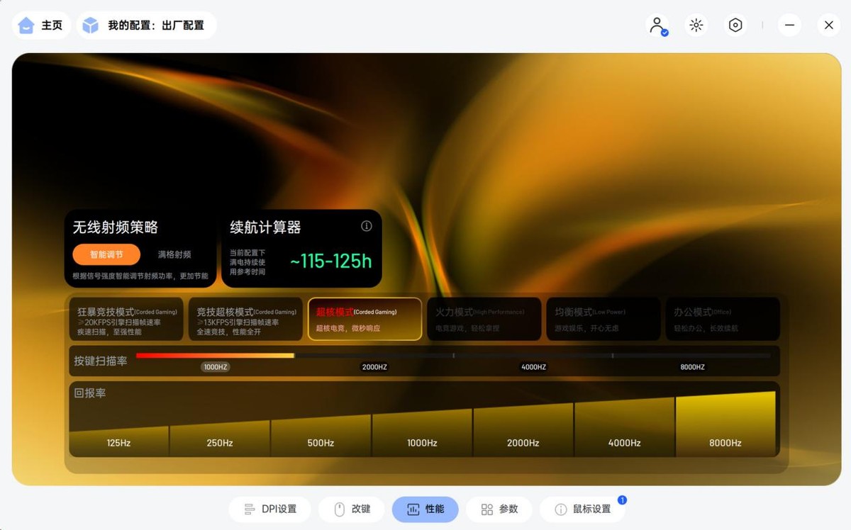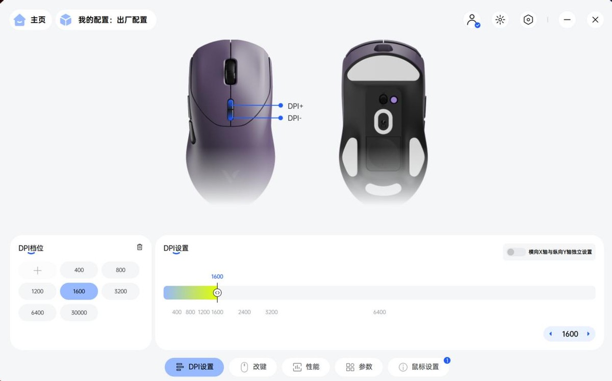 除了常规的预设DPI档位,用户可以更加自己需求微调合适的档位,让鼠标更适合自己的节奏。