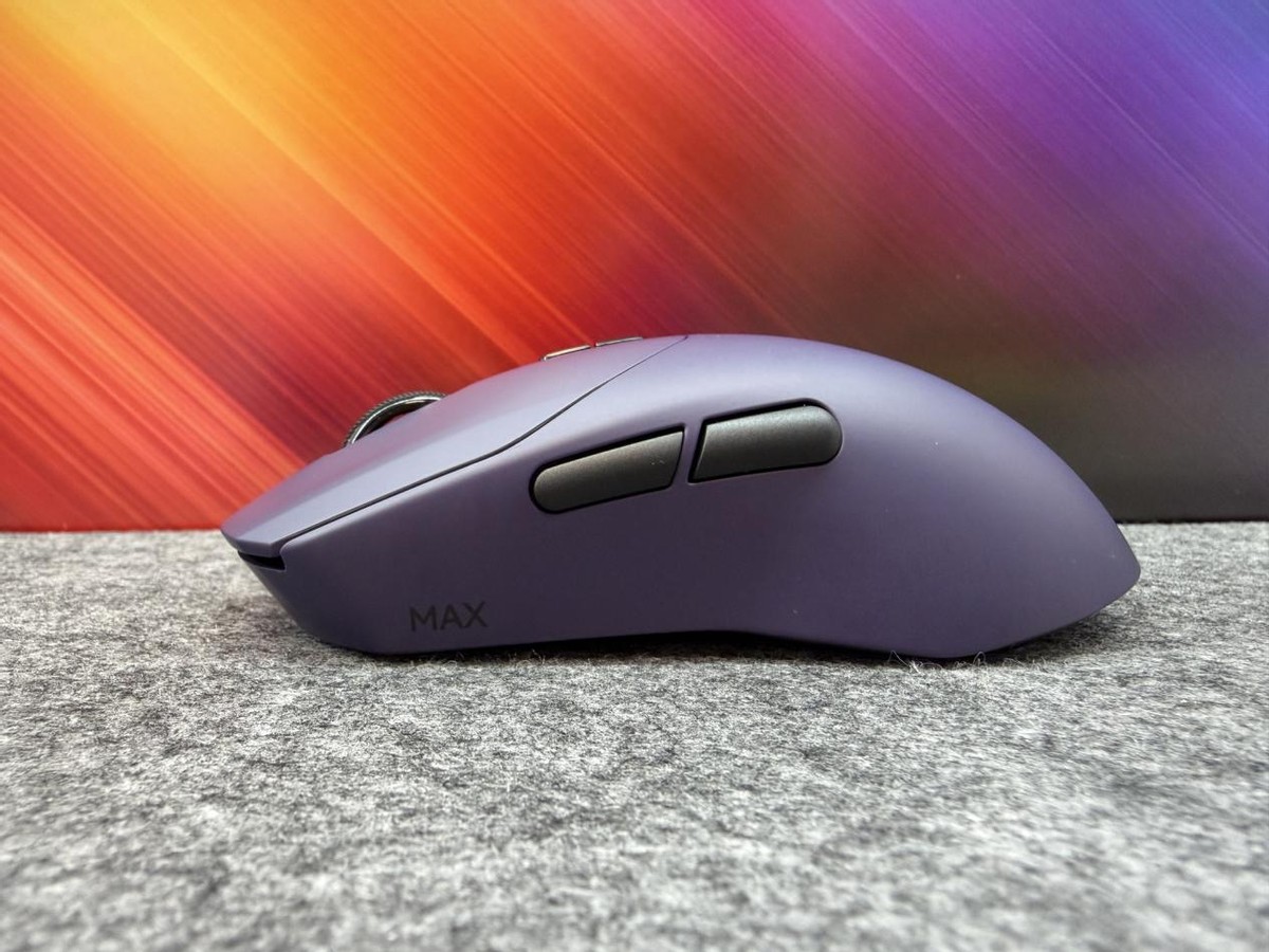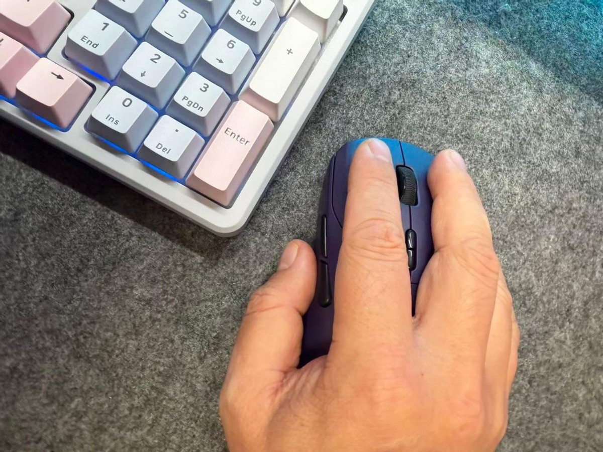 平时习惯趴握,鼠标两侧的收腰设计握感很舒适,鼠标平缓的顶部弧度、饱满的背部手掌放上去可以非常自然,53克的重量移动起来也非常轻松,鼠标在毛毡垫上移动顺滑,操控感相当好。