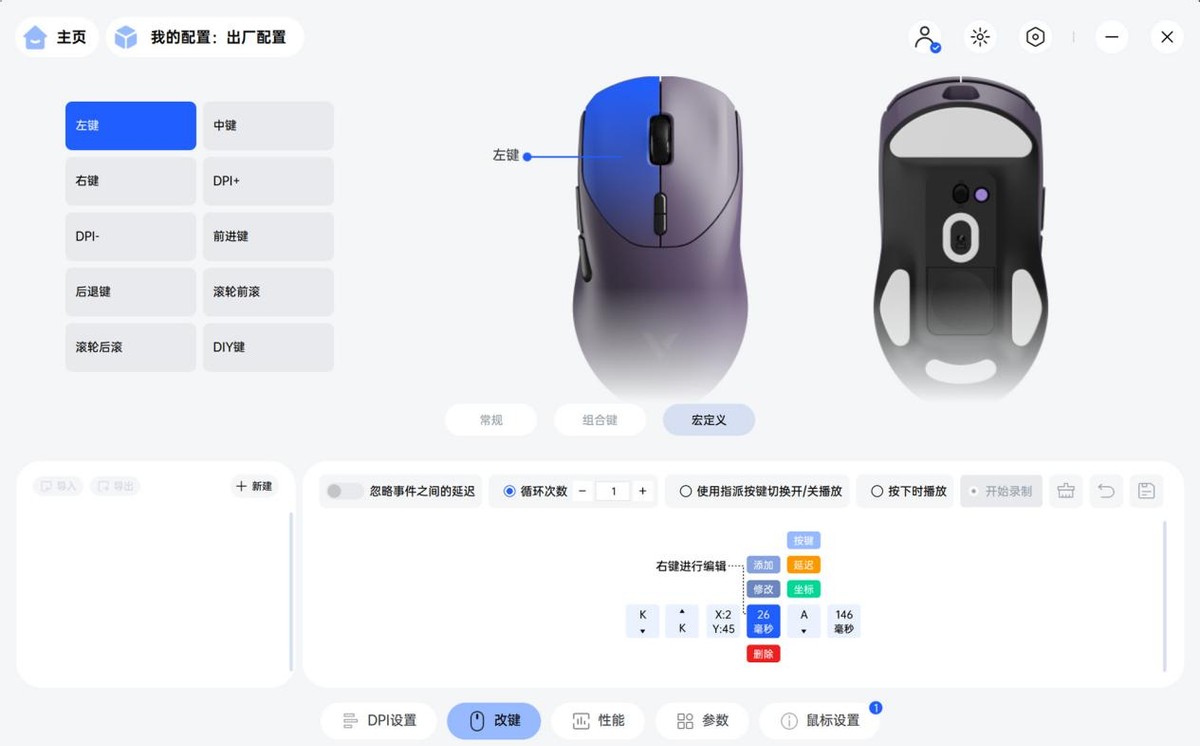 除了自定义按键功能,还可以DIY按键,通过一个按键实现组合键功能,一键释放大招杀敌制胜!