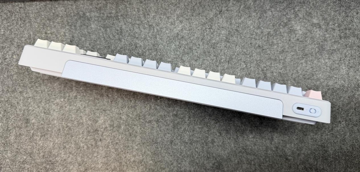 键盘的后侧有一条厚实的铝材质金属装饰条,和时空幻境仓相呼应,质感和层次更加丰富。键盘的手感更加坠手,和铝坨坨的手感相差无几。模式调节按键和数据线接口设计在键盘的一侧,连接数据线的时候也更方便整理。