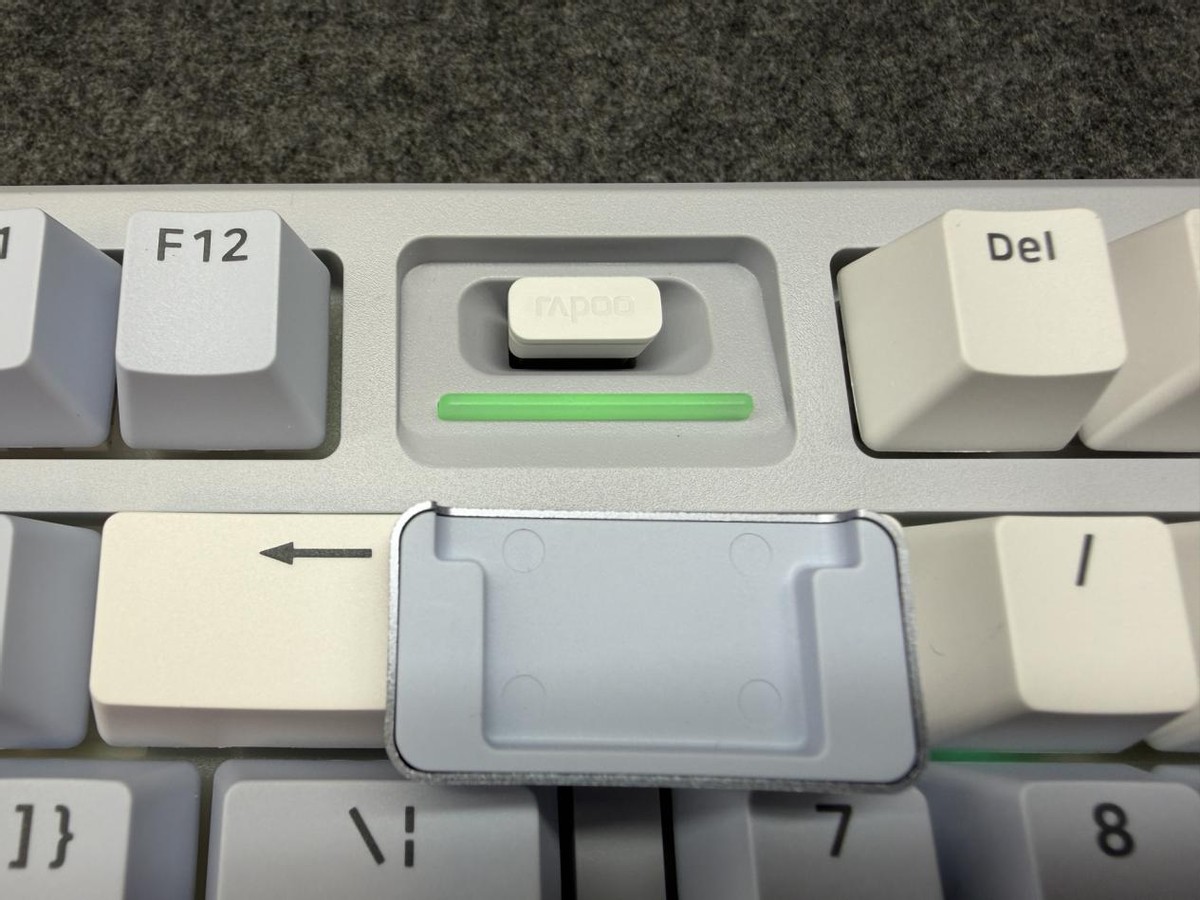 键盘小数字区域上方设计了专门的接收器磁吸时空幻境仓,设计感十足,并且还带有电量指示灯,可随时知悉键盘剩余的电量。
