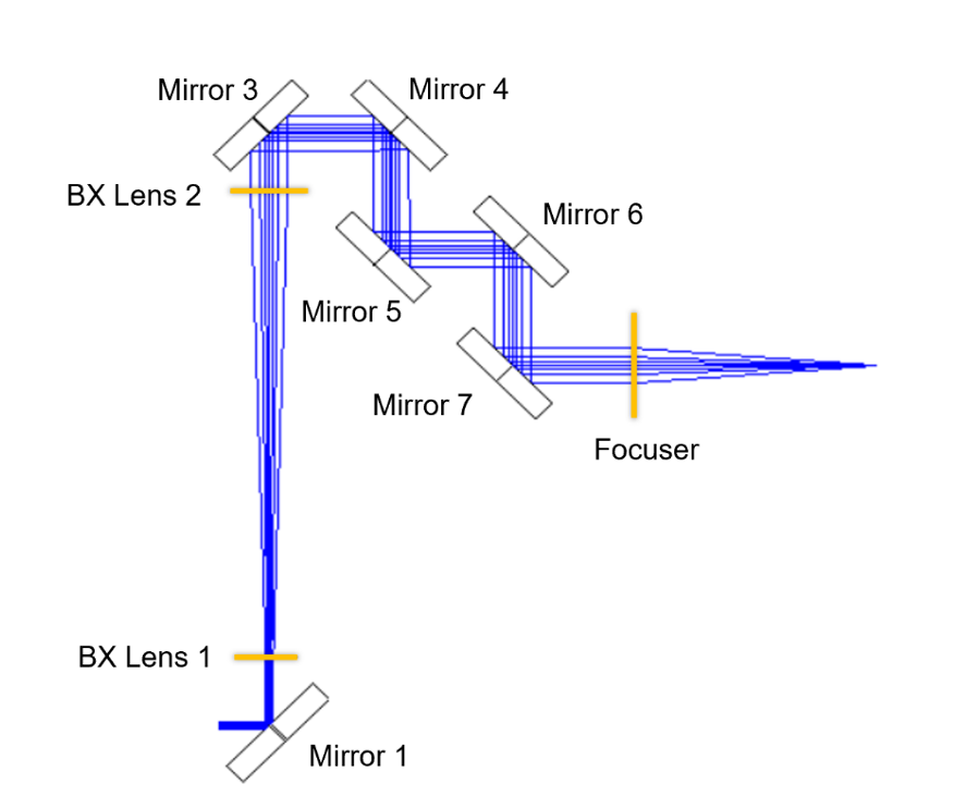 为了验证影响程度,我们使用Ansys Zemax OpticStudio搭建了一个包含7面反射镜的扩束系统模型。