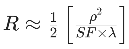 如果我们用抛物线近似来计算曲率半径 R,公式如下: