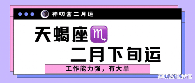 分析:二月对于天蝎们来讲需要宅一点,不建议去旅行,甚至短途旅行都不是很适合。去太远,容易累,也不是很顺畅。反而宅家对你来讲是非常好的养精蓄锐的方法。另外,二月下旬你也得多注意下自己的健康,多照顾下自己,即使宅家,也别熬夜哈,早点休息很重要。
