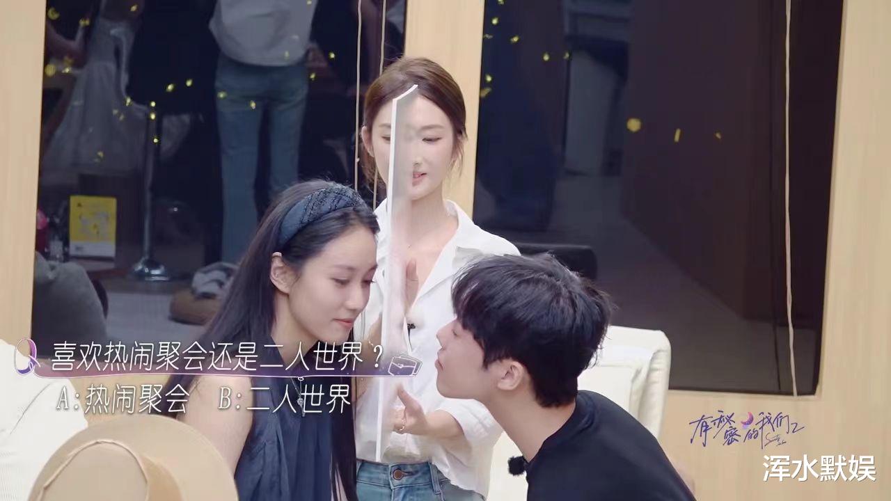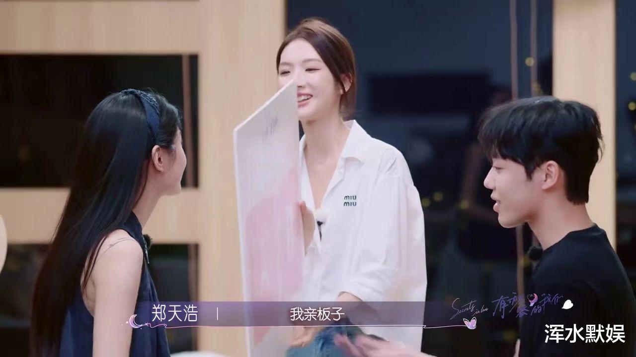 郑天浩在玩“你画我猜”的游戏时,明明自己画得不好,还非得说王梓莼不聪明,所以猜不中。在玩“默契游戏”的时候,两人面对面做选择题,中间隔着一块板子,答案一致的时候,很可能脸会凑到一起。