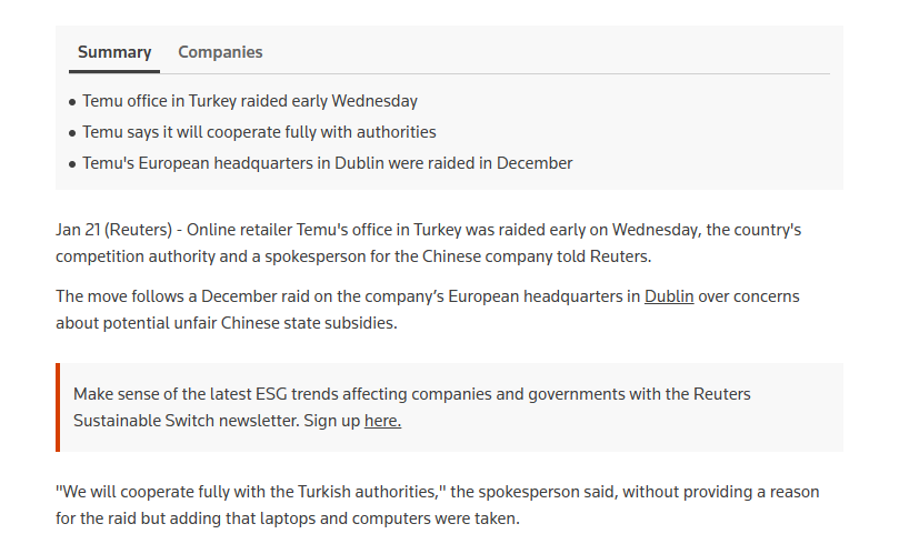 就在此变化发生前的1月21日,土耳其竞争管理局对TEMU位于伊斯坦布尔的办公室进行了一次现场检查。
