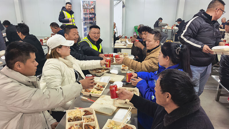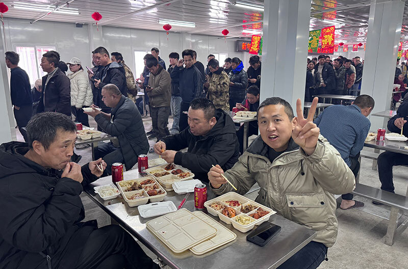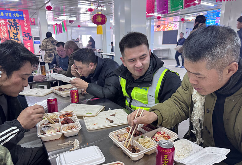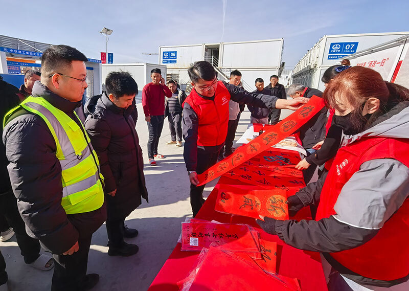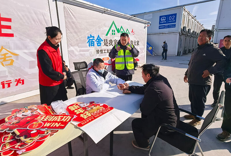 2月16日,除夕佳节,中铁建工北京林业大学雄安校区项目部开展暖心慰问活动,为坚守岗位的近千名工友送上新春关怀。项目部精心准备免费团圆午饭,现场新春签到、写对联、发福字,传递新春祝福;同步开展义诊服务,提供进行健康咨询与基础检查,以实际行动关爱工友身心健康,营造温馨祥和的节日氛围。