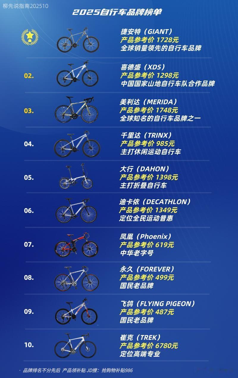 下沉市场用户则更注重性价比与实用性,车辆耐用性、维修便捷性及价格敏感度仍是其核心考量。自行车品牌定位各异,价格区间广泛,从国际巨头到本土老牌,形成了多元化的市场格局。