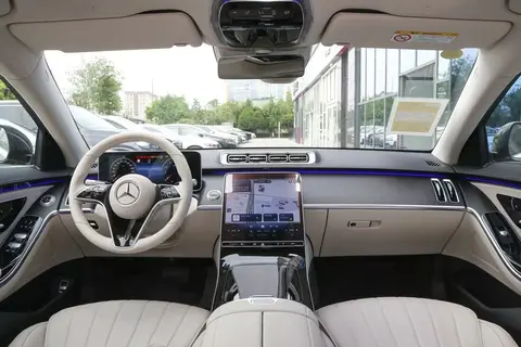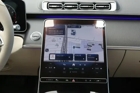 内饰部分,2026款奔驰S级预计将完全沿用老款的设计风格与功能布局。前排配备带实景穿越功能的平视显示系统、12.3英寸3D数字仪表屏以及12.8英寸OLED中央显示屏,可与后排的7英寸MBUX智能平板电脑、双11.6英寸MBUX后排娱乐系统实现多屏联动;同时,支持多区识别的“读心语音助理”,能够精准响应后排乘客的语音指令。