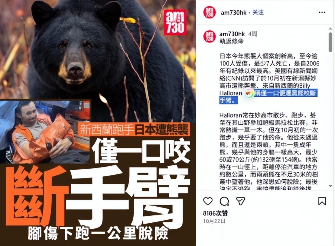 这个人胳膊都被咬穿了,硬是把熊给打跑了,然后自己打电话求救,没过几天,一个西班牙游客在岐阜县的白川村旅游,也被熊给伤了胳膊。