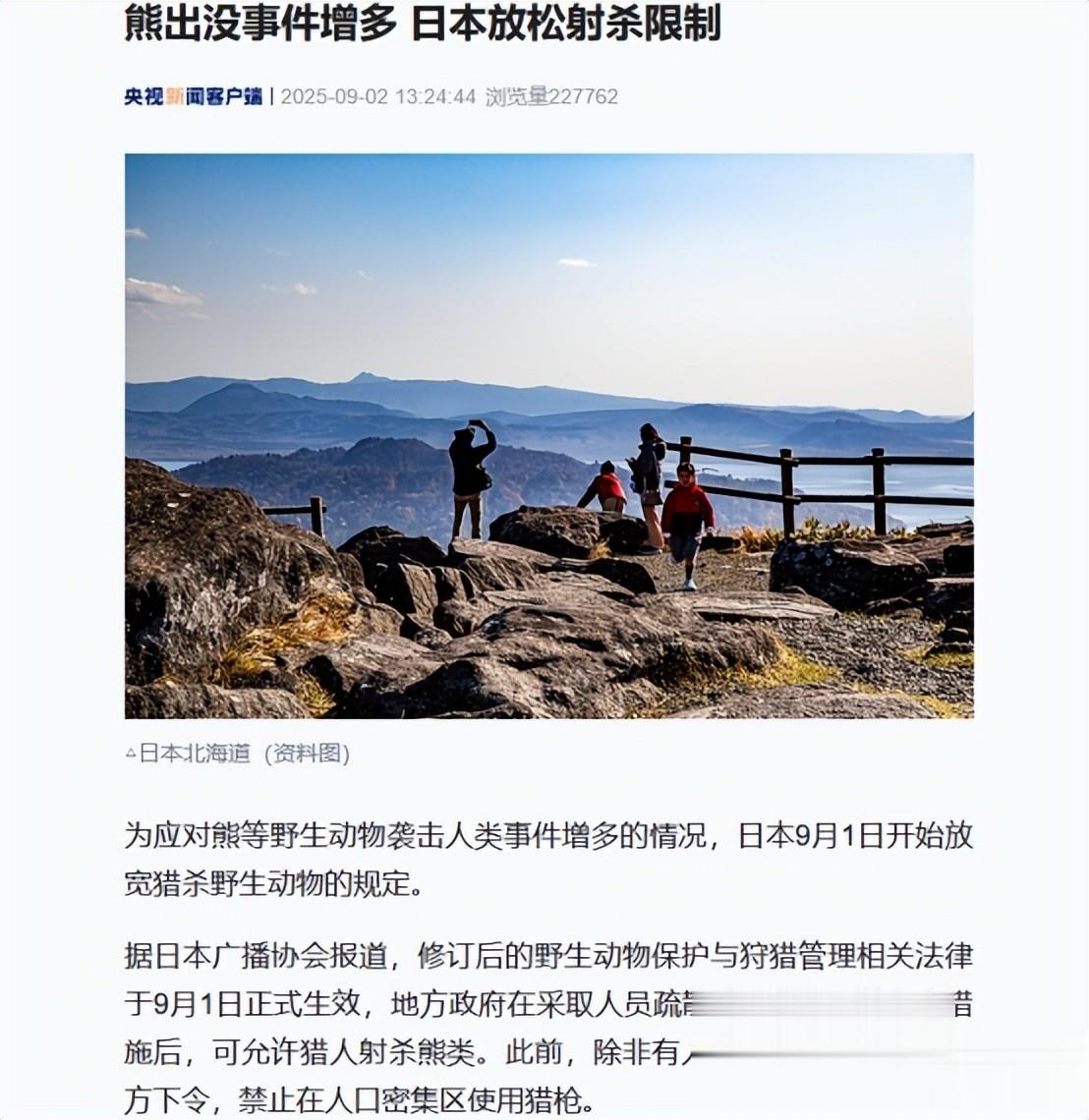 就算熊灾最严重的秋田县知事亲自去求,防卫大臣也说,军队最多只能在熊被打死后,派人去帮忙搬运尸体,上一线开枪门儿都没有。