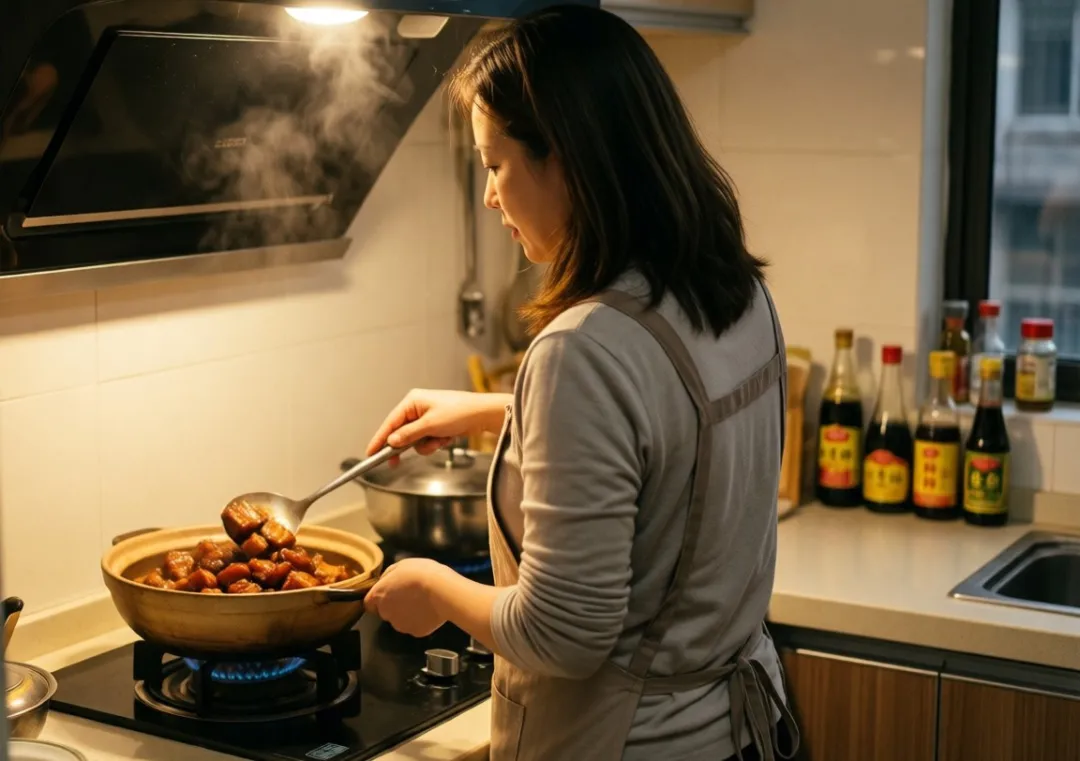 那天我在朋友圈发了一张晚饭的照片,红烧肉有点糊,青菜炒老了,但全家都吃完了。