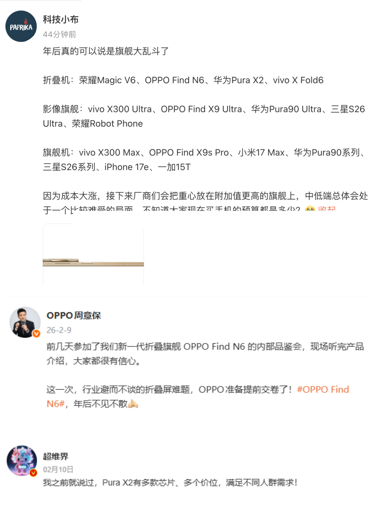26年性价比机型很难做了,成本大涨的风波下,厂商都要重心往高附加值旗舰上挪,折叠屏就是重点之一,不过估计也是会涨价。