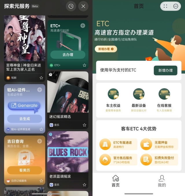 以为办ETC要专门跑营业厅,我就一直没办。这次,我在探索元服务里直接刷到了“ETC助手”卡片。通过华为支付就能在线办理,不仅流程丝滑,还能享受通行费95折优惠。对于长途自驾来说,省下来的钱可以买杯咖啡了。