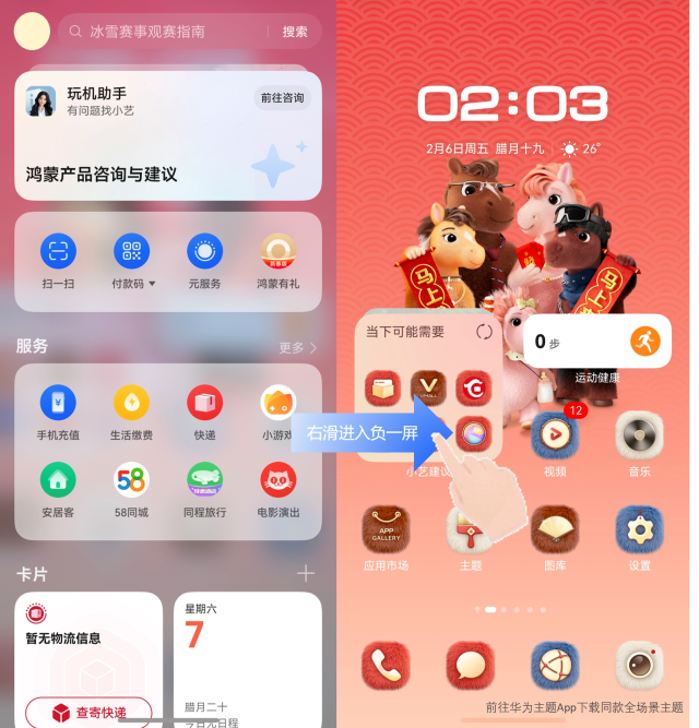 华为负一屏的“探索元服务”不仅仅是一个功能入口,更像是一个懂你的智能助手。它把春节期间最需要的出行、生活服务,用最轻量的方式恰合时宜的送到了手边。现在就手机桌面右滑一下到负一屏,然后下滑进探索元服务,既能集卡赢2026元大奖,又能体验生活便利,这个春节,让好运和效率都“马上来”!